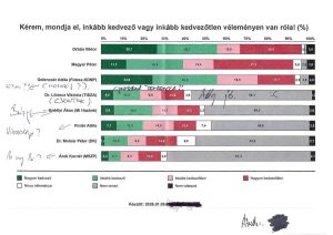 Gelencsér Attila neve mellé 2,3 százalékos növekedést és sok-sok pontot írtak, míg Lőrincz Viktória neve mellett 0,7 százalékos csökkenés és szintén sok-sok felkiáltójel található. Egyértelmű az aggódás, miként az is, hogy a Mi Hazánkos Erdélyi Ákos is meglepetés számukra, ezt bizonyítja a „Vele valamit kezdjetek,, utasítás.